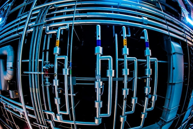 プラントで製造に使用する酸素や蒸気、ガスや液体を輸送する配管の製作、取り付ける作業です。